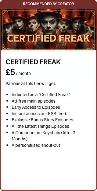 Support the show by becoming a Certified Freak on Patreon and you'll unlock early episodes, exclusive merch, and bonus stories — all from the darker corners of true crime, historical events & incredible people.